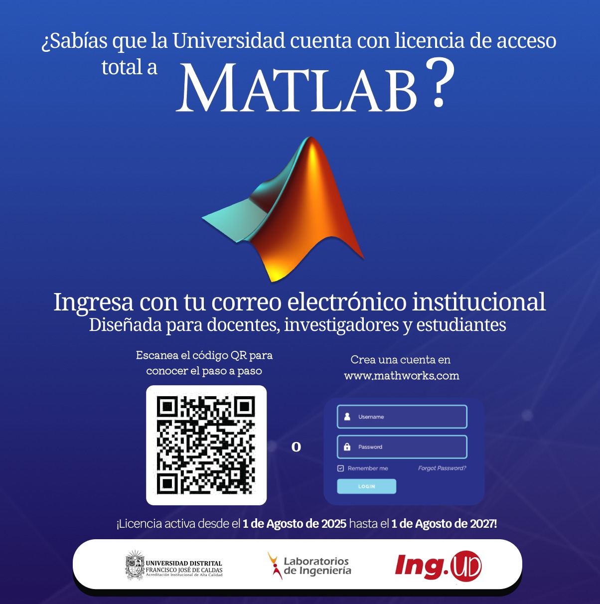 Nos complace informar que la Universidad Distrital Francisco José de Caldas ha renovado la licencia del software Campus MATLAB por un período de dos años, comprendido entre el 1 de agosto de 2025 y el 1 de agosto de 2027.