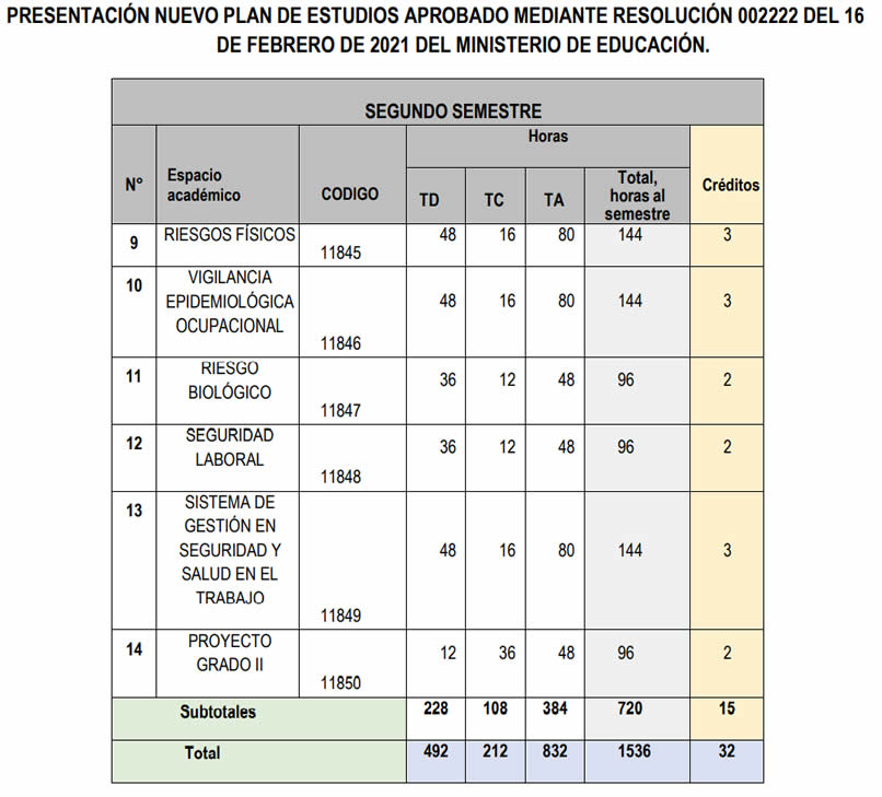 * Segundo Semestre: Quince Créditos (15) Equivalente a 7.5 SMMLV