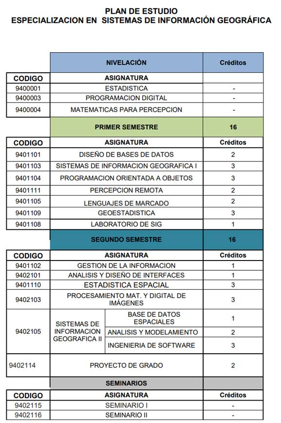 La Especialización en Sistemas de Información Geográfica de la Universidad Distrital Francisco José de Caldas, está dirigida a profesionales de todas las áreas, que acrediten experiencia en el manejo de información espacial y que estén interesados en profundizar o adquirir conocimientos en gestión y análisis de información espacial, haciendo uso de tecnologías de la información y comunicaciones actuales.