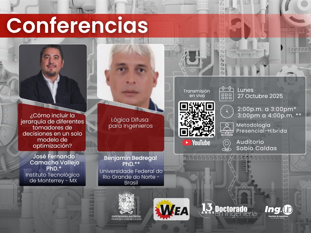 La Maestría en Ing. Industrial, el Doctorado en Ingeniería y la Facultad de Ingeniería de la Universidad Distrital tienen el placer de invitarlo a la serie de conferencias en el marco del Workshop on Engineering Applications WEA 2025:
